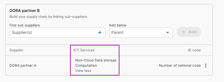 You can now add related ICT services for sub-suppliers under the Supply chain dropdown on the contract card. You do so by clicking the