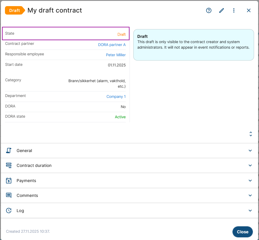 System administrators can now access contracts with "Draft" status. Previously, only the creator of the draft contract had access. This change gives system administrators a complete overview of all registered contracts in the system.