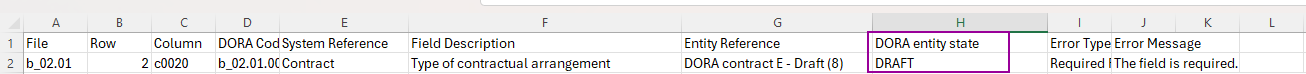 To prevent error messages upon import, adding free text to the DORA fields for partner import is no longer possible. Uploading a document with incorrect values in the DORA registration fields typeOfPerson, identityCodeType, additionalIdentityCodeType, country and currency will now be prevented, and users will be required to correct the values before importing.