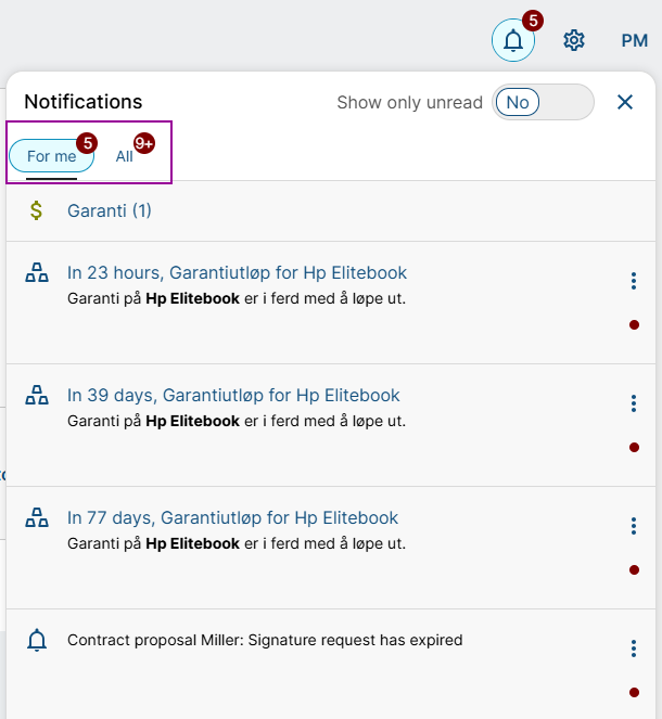 In the near future, notifications will be more visible on the contract card. Note that this functionality is not yet ready: At the moment, you can only see that the contract is linked to certain events. But soon, you can find and manage here all your notifications.