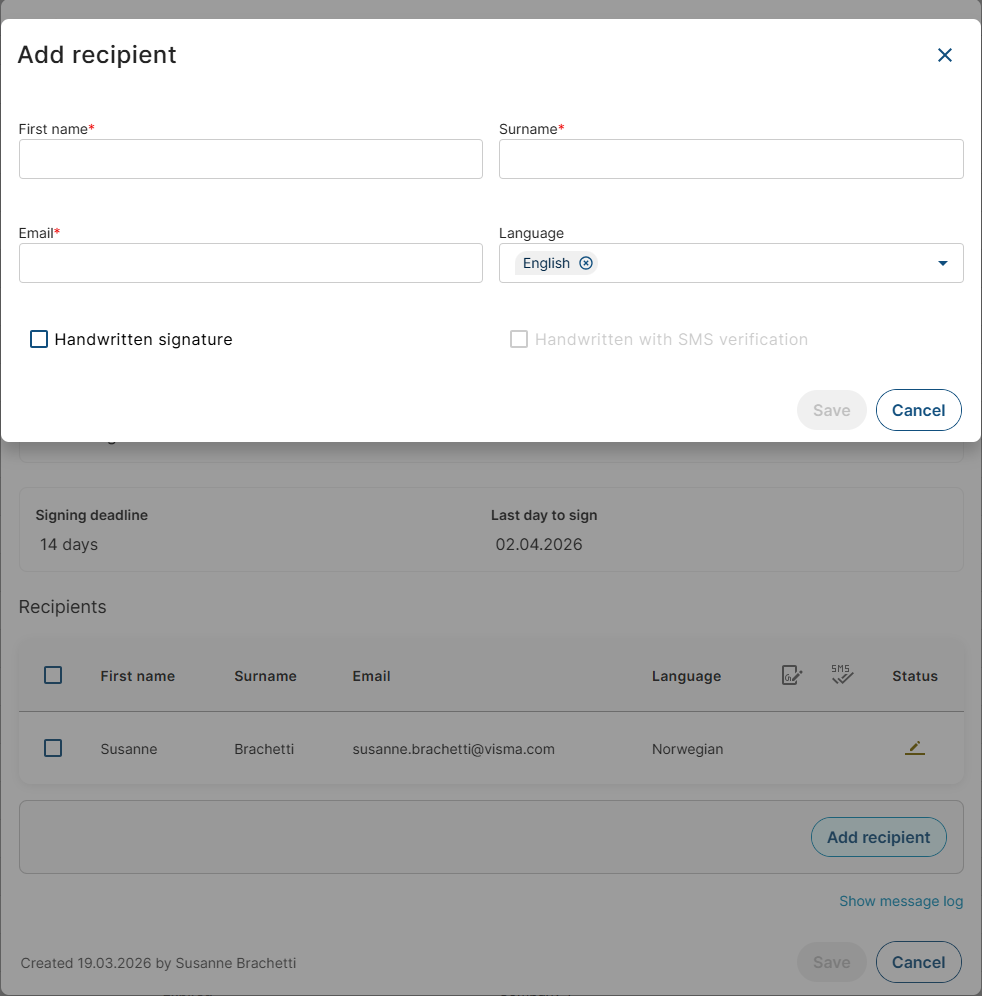 Creating and editing of recipients has been moved to a separate pop-up modal, resulting in a cleaner and more organized interface.