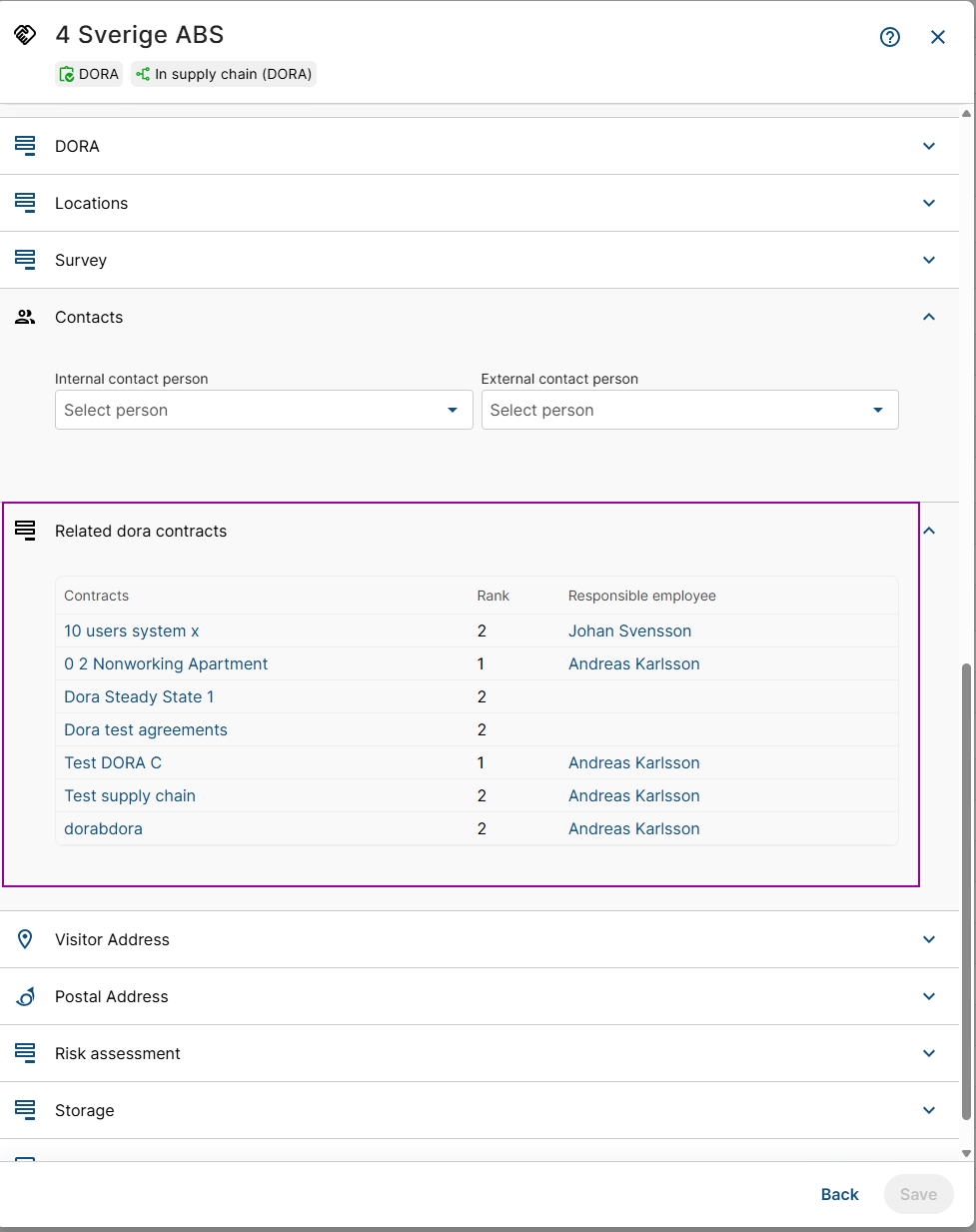 You can find the related contracts on the partner card under Related DORA contracts if this section is defined in your solution. The column Rank indicates if this is the main supplier or a sub-supplier. If not, talk to your contact person at House of Control AS.