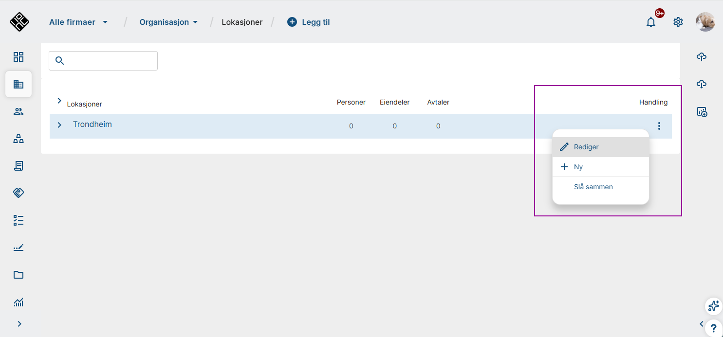 Lokasjonslisten samsvarer nå med andre lister og inkluderer en 3-punktsmeny. Les mer om lokasjoner her.