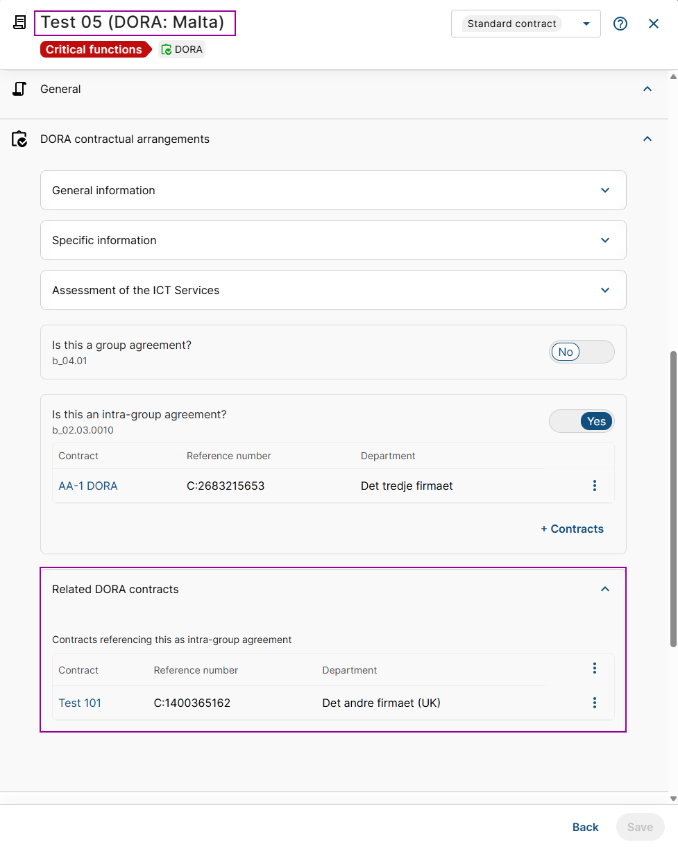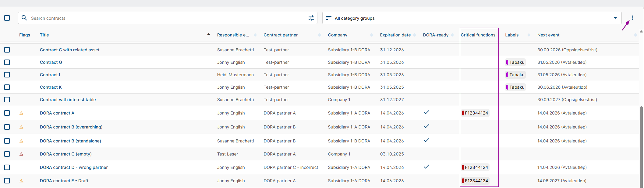 Tidligere var det vanskelig å se med en gang om en avtale var relevant for DORA. Nå kan du se dette under avtalens overskrift.