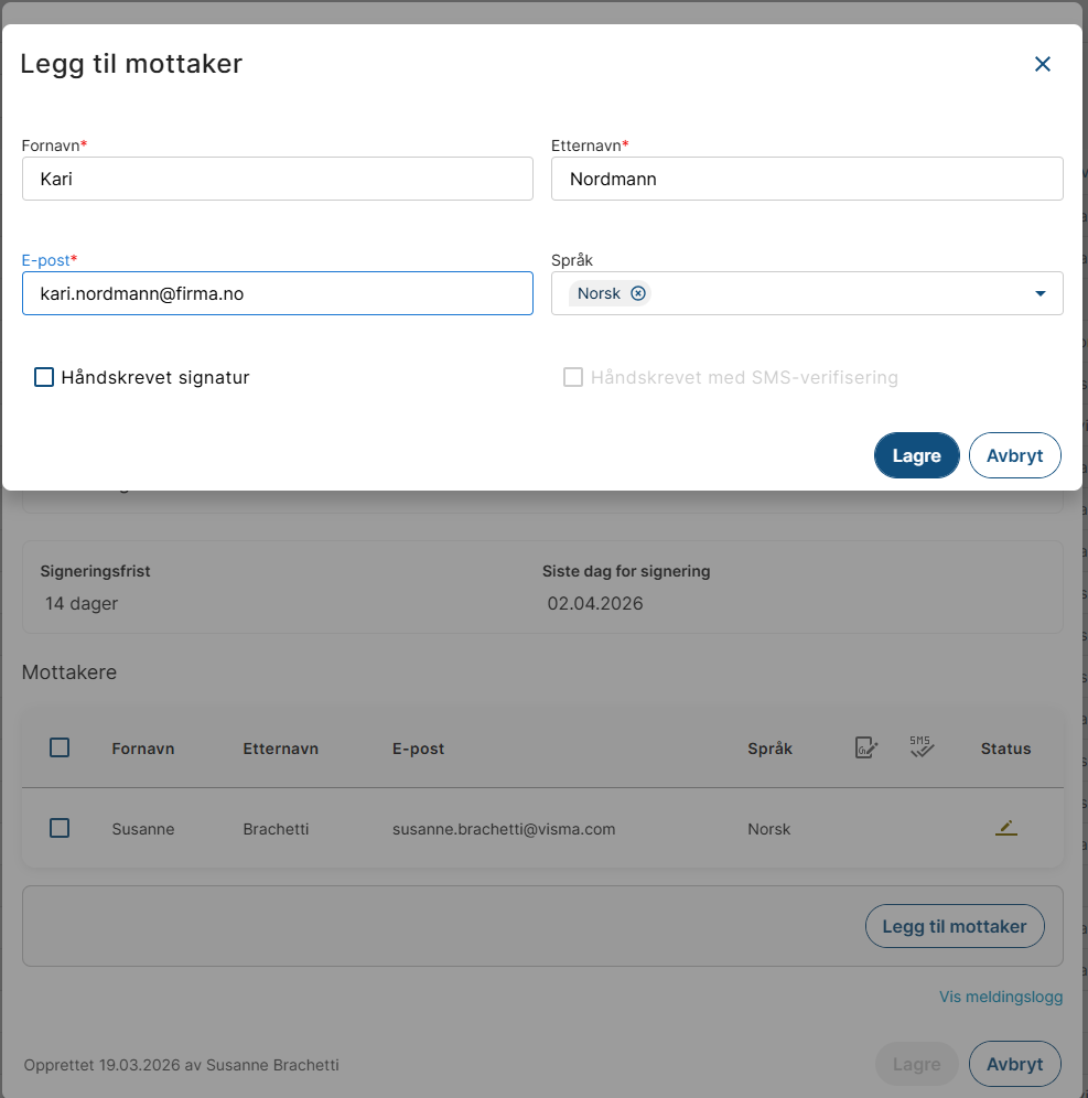 Husk at tillegginformasjonen som vises for mottakerne på signeringsskjemaet, vises på brukerens browserspråk.