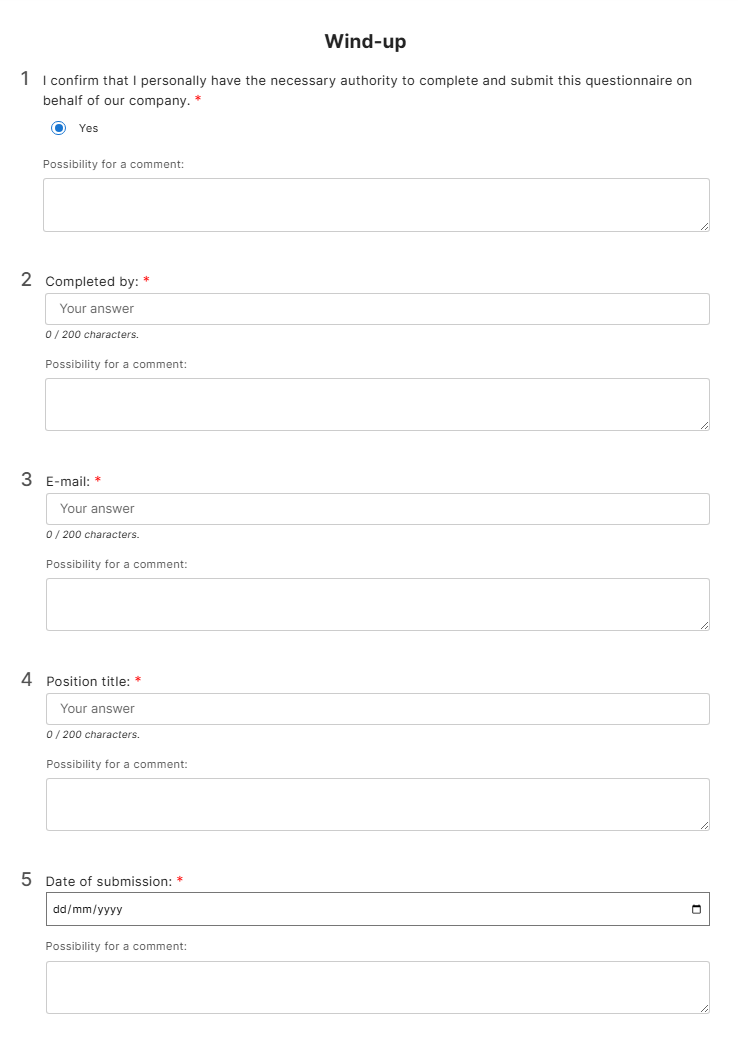 Our OECD template has been extended with a final topic that contains information about the person who has filled in the form.